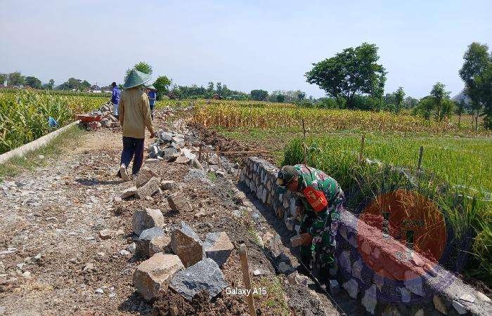 ” Hari ini kami bersama warga Dusun Damplok bergotong royong atau kerja bakti dalam pembuatan saluran air atau irigasi di area persawahan Dusun Damplok, ” ujarnya.