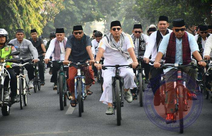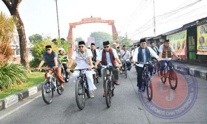 Uniknya, seluruh peserta gowes kompak mengenakan pakaian muslim.