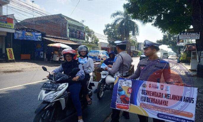 Sosialisasi tersebut berlangsung di berbagai titik strategis, salah satunya di Pertigaan Karangploso, dengan melibatkan Satuan Lalu Lintas (Satlantas) Polres Malang.