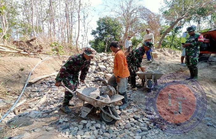 “ Disamping memperingati HUT ke 79 TNI, tentu ini merupakan salah satu wujud kepedulian kami untuk terus memberikan yang terbaik kepada warga yang sedang membutuhkan bantuan termasuk salah satunya ikut berpartisipasi pada pembuatan jalan atau jembatan ini, “ terang Kapten Arm Winarko.
