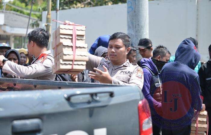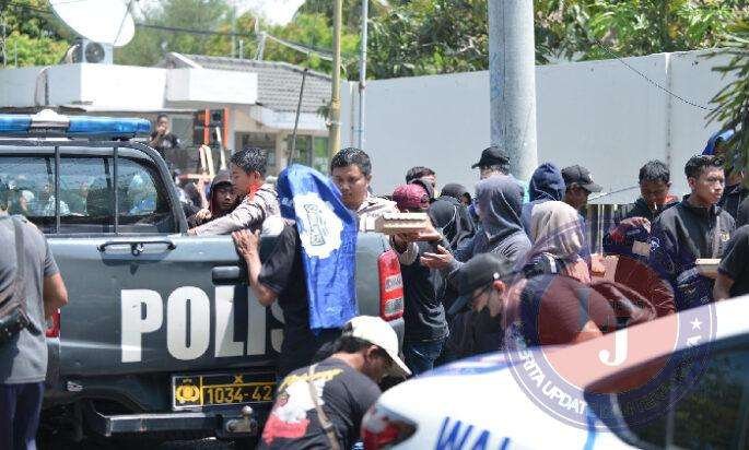 Humanis, Polisi Berbagi Nasi Kotak untuk Peserta Unras Sarbumusi Situbondo