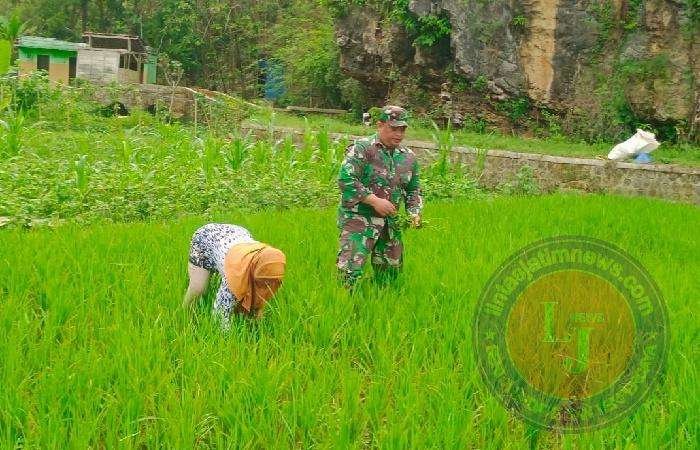 Tingkatkan Hanpangan Nasional, Babinsa Koramil 0801/09 Sudimoro Bantu Penyiangan Padi
