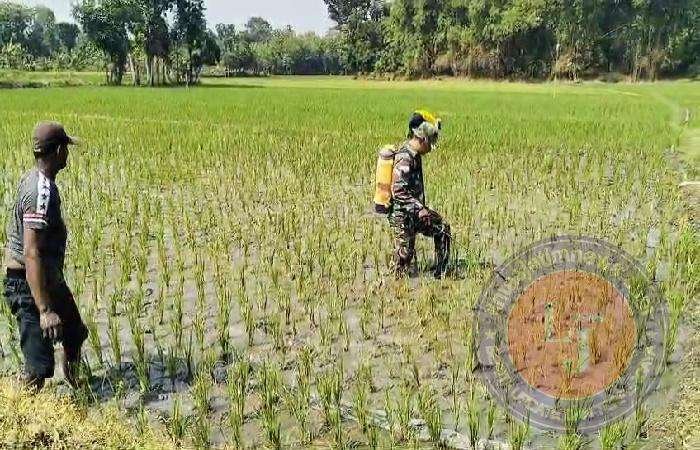 NGAWI lintasjatimnews – Dalam mendukung Ketahanan Pangan, Babinsa Koramil Karanganyar Kodim 0805/Ngawi Serma Sutikno langsung turun ke lapangan guna Bantu Petani.