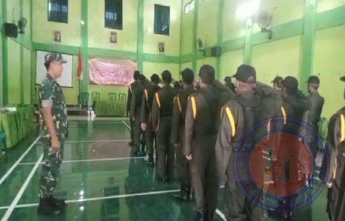 Materi PBB diberikan oleh Babinsa Koramil 0801/01 Pacitan Serka Heriyanto bersama Bhabinkamtibmas Polsek Pacitan dan di ikuti sebanyak 20 org anggota Linmas Desa Sambong.