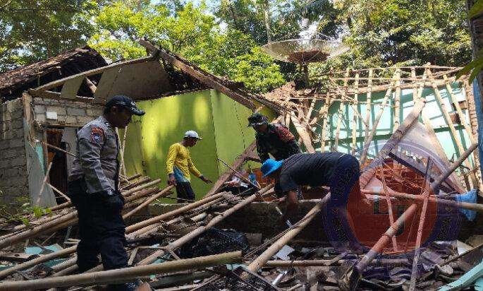 TRENGGALEK lintasjatimnews – Kesigapan TNI dan Polri dalam membantu masyarakat kembali terlihat nyata di Trenggalek. Babinsa Dawuhan, Sertu Masngudi dari Koramil 0806-01/Trenggalek bersama Bhabinkamtibmas Aiptu Sofyan dan warga Desa Dawuhan, bergotong-royong membersihkan puing-puing rumah Mbah Yati (65) yang roboh diterjang hujan. Aksi kemanusiaan penuh semangat ini berlangsung pada Sabtu (2/11/2024) di Desa Dawuhan, Kecamatan Trenggalek.