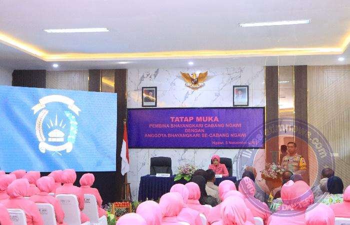 NGAWI lintasjatimnews – Kapolres Ngawi AKBP Dwi Sumrahadi Rakhmanto, didampingi Ketua Bhayangkari Cabang Ngawi Ny. Indah Dwi Sumrahadi melaksanakan tatap muka bersama Bhayangkari, perwakilan Polwan dan ASN wanita.