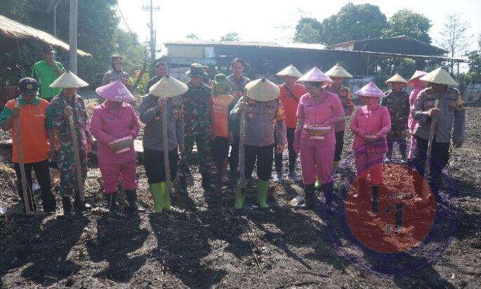 Selain itu, secara simbolis, Kapolres menyerahkan bibit jagung kepada Ketua Gapoktan dan melakukan penanaman bibit jagung bersama Bhayangkari di lahan seluas sekitar satu hektar.
