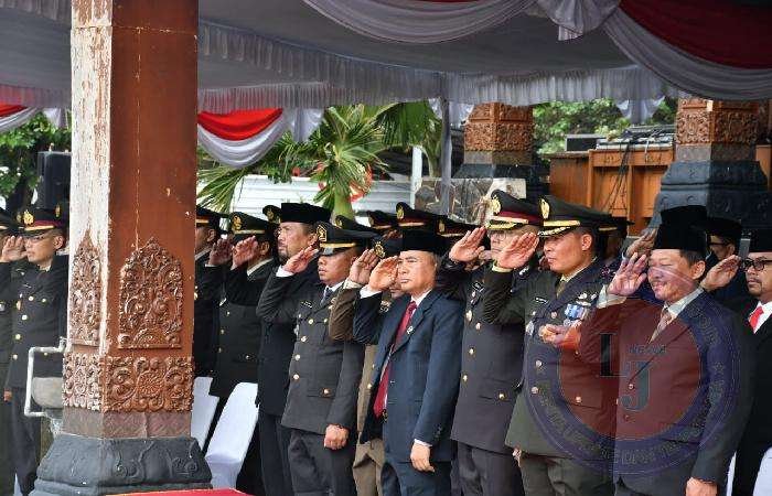 Upacara yang diselenggarakan oleh Pemerintah Kabupaten Ponorogo dan diikuti oleh sekitar 450 orang undangan tersebut bertindak selaku Inspektur Upacara (Irup) yaitu Pjs Bupati Ponorogo Ir. Joko Irianto.