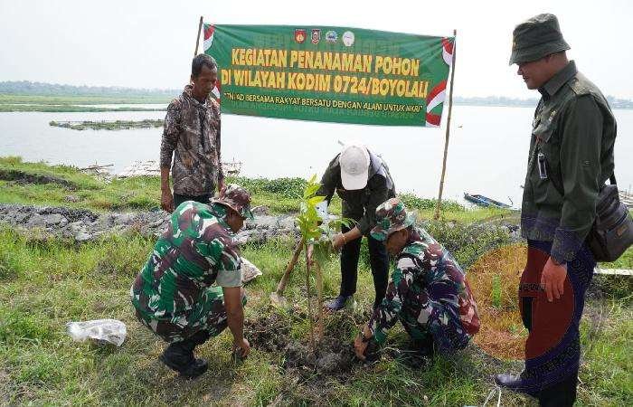 BOYOLALI lintasjatimnews – Dalam Rangka melestarikan lingkungan hidup, Kodim 0724/Boyolali melaksanakan kegiatan penanaman pohon di tanggul Waduk Ceklik Dukuh Ngalang Ngalangan Desa Senting Kecamatan Sambi Kabupaten Boyolali. (14/11/24)