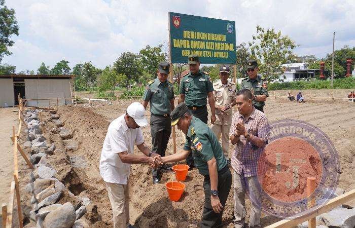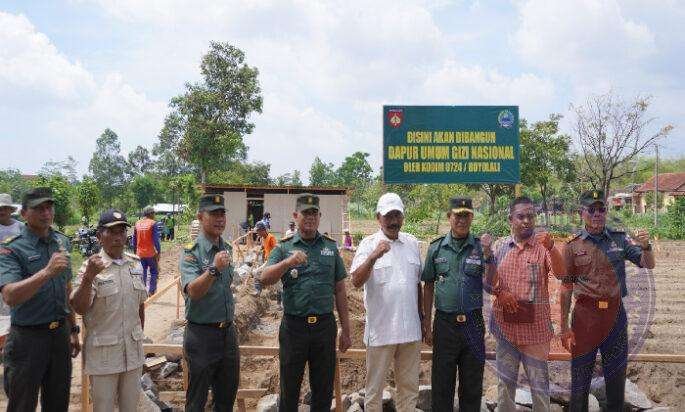 BOYOLALI lintasjatimnews – Dandim 0724/Boyolali Letkol Inf Wiweko Wulang Widodo, S.Pd.M.Han yang di Wakili Kepala Staf Kodim 0724/Boyolali Mayor Inf Ismail bersama tim pelaksana pembangunan Dapur Sehat melakukan peletakan batu pertama dilokasi pembangunan Program Dapur Umum Gizi Nasional dari Kemenhan (Kemhan) RI di tanah Demlot Kodim 0724/Boyolali Dukuh Surodadi Kelurahan Siswodipuran Kecamatan Boyolali. Senin (18/11/24)