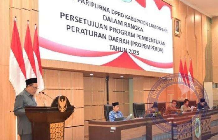 LAMONGAN lintasjatimnews – Sebanyak 14 (empat belas) Rencana Program Pembentukan Peraturan Daerah (Propemperda) Tahun 2025 yang terdiri dari 5 (lima) judul rancangan inisiatif DPRD dan 9 (sembilan) usulan Pemerintah Daerah, Senin (18/11/2024)