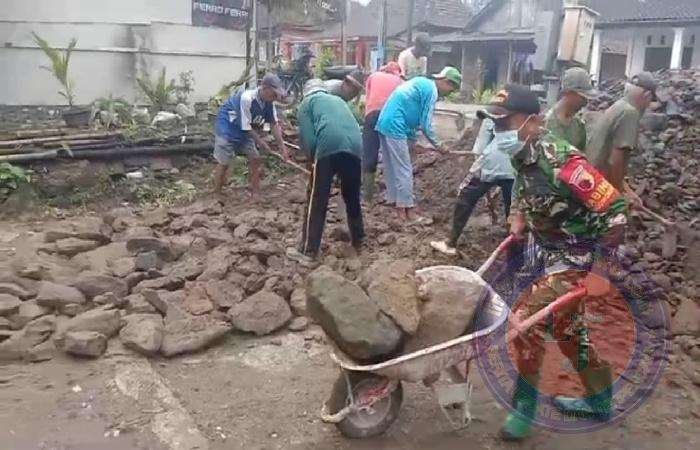Serda Eko Suryono yang hadir di lokasi karya bakti terlihat bahu membahu dengan Warga Desa. Dirinya menuturkan bahwa Babinsa akan selalu hadir di tengah Warga binaannya.