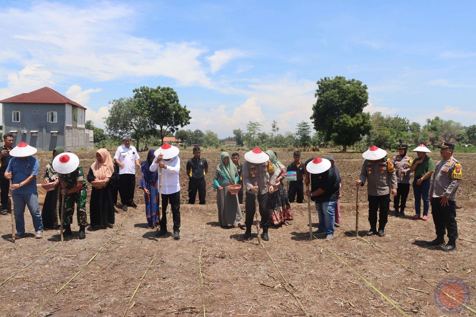 Hadir pula perwakilan dari Dinas Pertanian Kabupaten Pasuruan, Ketua Gapoktan Desa Karangsono, perangkat desa setempat, serta masyarakat sekitar. Selain itu, Kapolsek jajaran Polres Pasuruan, Forkopimcam, dan unsur pertanian setempat mengikuti kegiatan melalui live streaming.