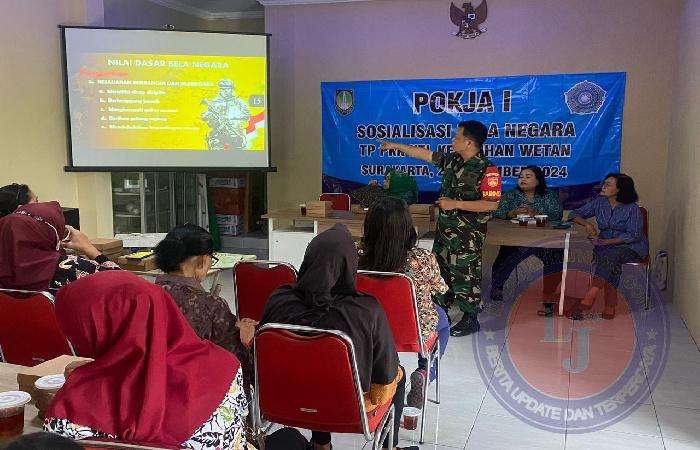 SURAKARTA lintasjatimnews – Babinsa Kepatihan Wetan Koramil 04/Jebres Kodim 0735/Surakarta Sertu Budiono terjun langsung memberikan materi Bela Negara kepada Kader PKK di gedung PKK Jl. Sangihe Kelurahan Kepatihan Wetan Kecamatan Jebres Kota Surakarta. Kamis (21/11/2024 ) Pkl 16.00 Wib