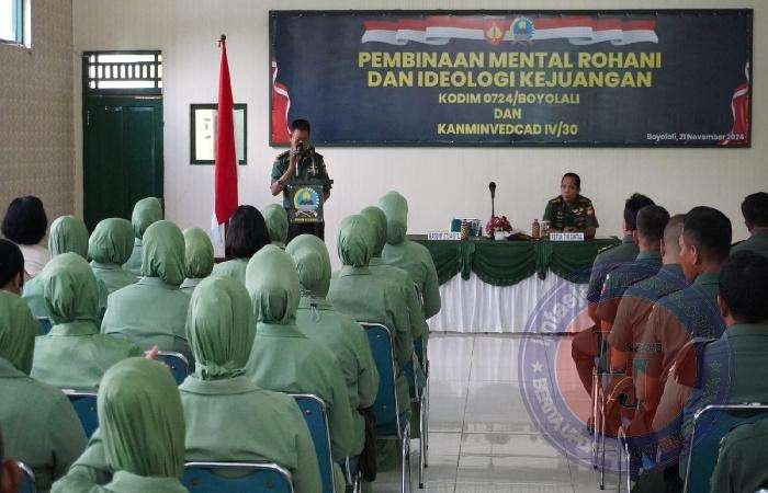 BOYOLALI lintasjatimnews – Kodim 0724/Boyolali menerima Pembinaan Mental Rohani Dan Ideologi Kejuangan dari Tim Bintal Kodam IV/Diponegoro yang bertempat di Aula Makodim 0724/Boyolali Jl. Padanaran Desa Tegalmulyo Kecamatan Mojosongo Kabupaten Boyolali. Kamis ( 21/11/24)