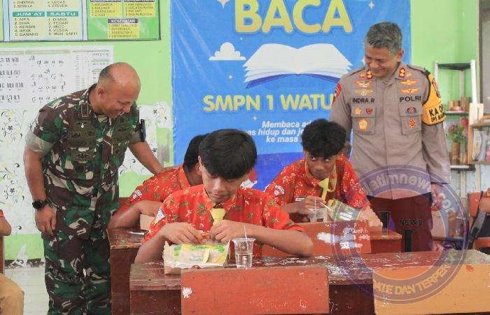 Acara yang berlangsung meriah di halaman SMPN 1 Watulimo ini dihadiri oleh sejumlah tokoh penting, termasuk Dandim 0806/Trenggalek Letkol Czi Yudo Aji Susanto, S.Sos., M.A., Kapolres Trenggalek AKBP Indra Ranu Dikarta, S.I.K., M.Si., Kepala PPN Prigi Ir. Ririn Sugihariyati, Forkopimcam Watulimo, Danposmat AL Lettu Laut (P) Yudik Subandi, Danpos Airud Prigi Aipda Joko Suwito, serta para kepala sekolah dan guru dari kedua sekolah penerima manfaat.