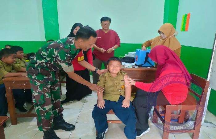 Salah satu Guru, Ibu Ani, mengaku sangat terbantu dengan kehadiran Babinsa. “Biasanya anak saya sangat menangis saat disuntik, tapi hari ini dia tenang karena ada Pak Babinsa. Terima kasih atas bantuannya,” ujarnya.