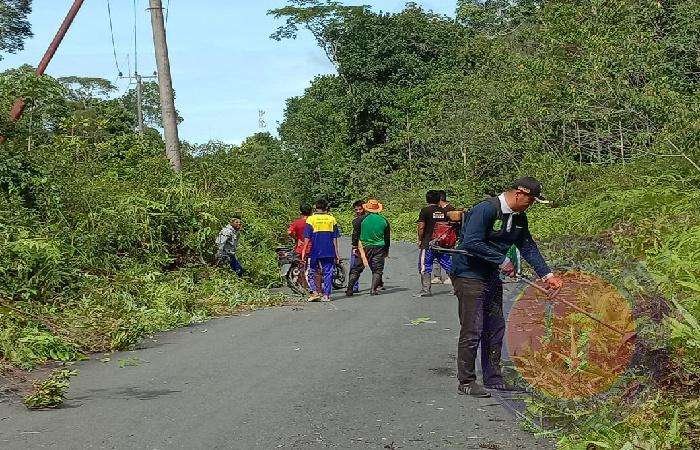 Lanjut Hari ini alhamdulillah giat Gotongo royong ini kami libatkan semua intansi kades kades Rt/Rw pihak puskemas sekolahan Dari SD SMP SMA, juga Babinkamtibmas, Babinsa, dan masyarakat, Bertujuan supaya bagi pengendara kendaaraan roda dua baik roda empat bisa memandan tembus pandang dari arah depan bisa kelihatan, karena kondisi tepi jalan raya ini rumput dan anak-anak kayu sudah tinggi jadi semak gelap, maka kami ajak masyarakat Giat Goro, biar kelihatan terang tembus pandang arah depan, dan juga untuk mencegah terjadi DBD Demam berdarah, pungkasnya.
