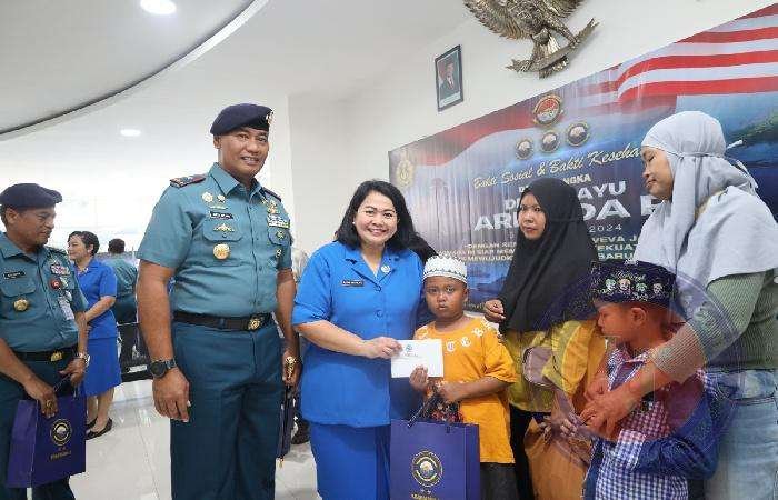 SURABAYA lintasjatimnews Komandan Pangkalan Utama TNI AL (Danlantamal) V Laksma TNI Dr. Arya Delano, S.E., M.Pd., M.Han., didampingi Ketua Korcab V Daerah Jalasenastri Armada II Ny. Febri Arya Delano menghadiri Bakti Sosial dan Bakti Kesehatan dalam rangka Hari Ulang Tahun (HUT) Armada ke-79 Tahun 2024 yang berlangsung di Lakesla, Ujung, Surabaya. Senin (25/11/2024)