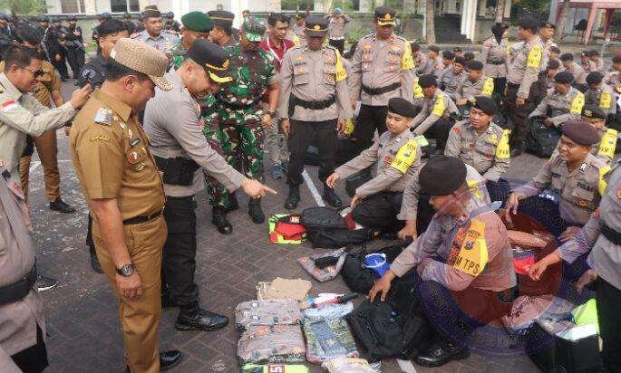 Sebelum personel bertugas, Nurkholis bersama Kapolres Pasuruan dan Dandim 0819 Pasuruan turut memeriksa kelengkapan peralatan yang dibawa petugas.