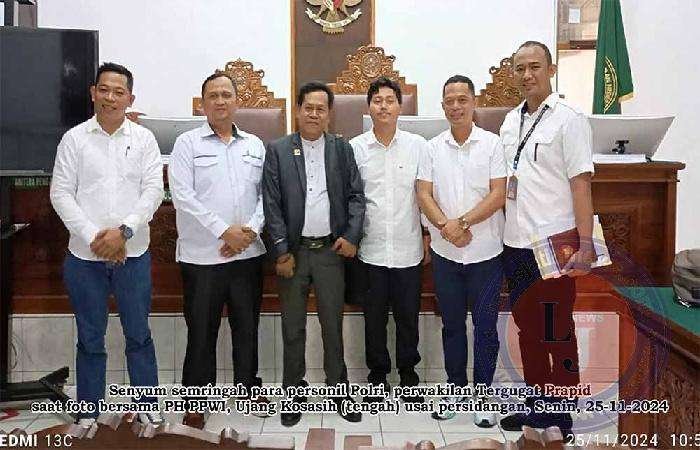 Hal itu disampaikan Penasehat Hukum PPWI, Advokat Ujang Kosasih, S.H., kepada media ini usai menghadiri sidang Prapid yang dilaksanakan di Ruang Dr. Mr. Kusumah Atmaja, PN Jaksel. “Berdasarkan pertimbangan bahwa telah terjadi proses perdamaian antara pelapor Saruji dengan klien kami, Rosmely, melalui restorative justice beberapa waktu lalu, maka Tim PH dan klien kami, Rosmely, yang didukung oleh jajaran pengurus pusat PPWI, pada sidang hari pertama tadi, kami nyatakan mencabut gugatan Prapid terhadap Kapolri, Kapolda Riau, dan Kapolres Inhil, yang kami daftarkan pada tanggal 01 November 2024 lalu,” jelas advokat senior kelahiran Banten itu sambil menambahkan bahwa sudah tidak ada alasan signifikan untuk melanjutkan gugatan Prapid tersebut.