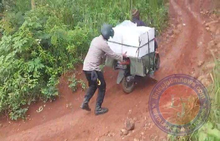 Bahkan, di beberapa titik, para petugas harus mendorong motor hingga memindahkan logistik secara manual untuk melewati medan terjal.