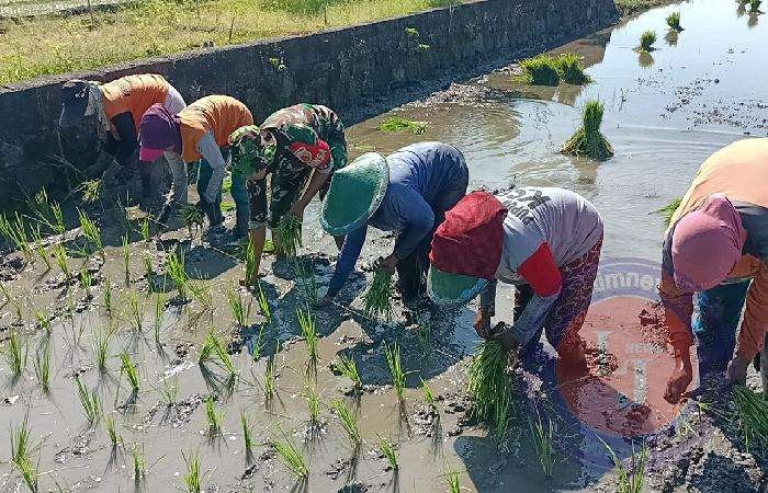 NGAWI lintasjatimnews – Pembinaan ketahanan pangan di kewilayahan terus ditingkatkan oleh Aparat TNI di wilayah. Seperti yang dilakukan Serda Gaip S Babinsa Koramil 0805/06 Kwadungan Kodim 0805/Ngawi dengan turun langsung ke sawah mendampingi kegiatan petani mulai pengolahan lahan hingga musim tanam, kali ini dalam kegiatan pendampingan tanam padi yang berada di Desa Budug Kec. Kwadungan Kab. Ngawi, Kamis (28/11/2024).