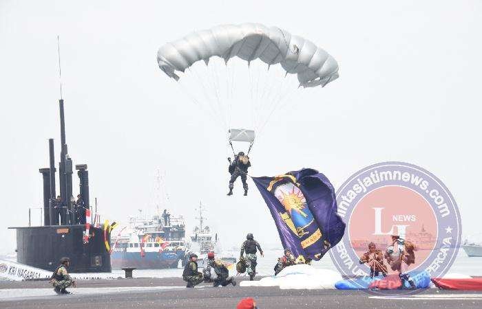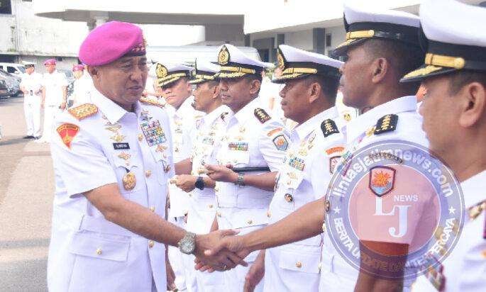 SURABAYA lintasjatimnews – Dengan mengusung tema “Dengan Semangat Jalesveva Jayamahe, Koarmada RI Siap Mempersatukan Kekuatan Laut Nusantara Untuk Mewujudkan Nusantara Baru Indonesia Maju”. Komandan Kodiklatal (Dankodiklatal) Letjen TNI Marinir Nur Alamsyah didampingi Ketua Gabungan Jalasenastri Kodiklatal Ny. Ayu Nur Alamsyah mengikuti rangkaian Upacara Puncak Hari Armada RI Tahun 2024 yang dipimpin langsung oleh Kepala Staf Angkatan Laut (Kasal) Laksamana TNI Dr. Muhammad Ali, bertempat di Dermaga Koarmada II, Ujung Surabaya. Kamis, (05/12/2024).