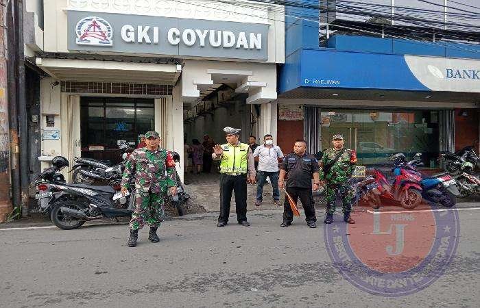 SURAKARTA lintasjatimnews – Babinsa Kelurahan Jayengan Koramil 03 Serengan Kodim 0735 Surakarta, Serka Priyanto dan Serka Rohmad laksanakan pengamanan guna memberikan keamanan dan kenyamanan dalam menjalankan ibadah Natal dan Tahun baru 2025 umat Nasrani di GKI Coyudan Jayengan Serengan Kota Surakarta, Minggu (08/12/2024) pukul 07.00 WIB.