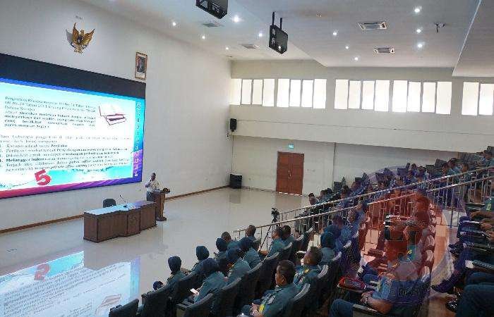 SURABAYA lintasjatimnews – Kasubbagdargakkum Bagkum Kodiklatal Pembina IV/a Noerfefriady Kamidi melaksanakan sosialisasi dalam rangka Hari Anti Korupsi Tahun 2024 kepada 70 orang Prajurit dan PNS Kodiklatal, yang dilanjutkan dengan pengisian kuesioner Zona Integritas (ZI) TA. 2025 dipandu oleh Kabaginfolahta Kodiklatal Letkol Laut (KH) Iwan Setiawan, bertempat di Gedung JOPR Kodiklatal, Bumimoro Surabaya. Senin, (09/12/2024).