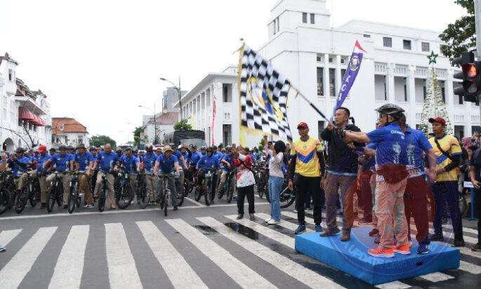 SURABAYA lintasjatimnews – Dalam rangka meramaikan Hari Armada Tahun 2024, Komandan Kodiklatal (Dankodiklatal) Letjen TNI Marinir Nur Alamsyah didampingi Wakil Komandan (Wadan) Kodiklatal Laksda TNI I Gung Putu Alit Jaya mengikuti Sunset Funbike bersama seluruh prajurit TNI AL Wilayah Surabaya yang mengawali start dari Monumen Jalesveva Jayamahe (Monjaya) dan finish di Kota Lama Surabaya. Minggu, (08/12/2024).