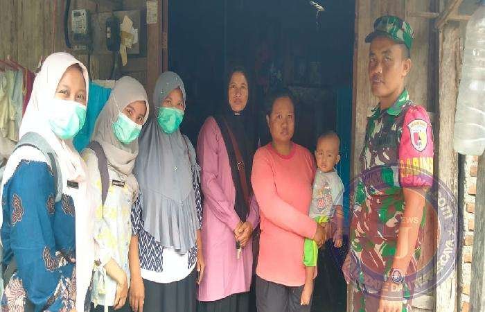 Babinsa bersama petugas Puskesmas tambak Boyo melakukan pemeriksaan kondisi kesehatan ananda Rizki ardian serta pemberian makanan/gizi tambahan.
