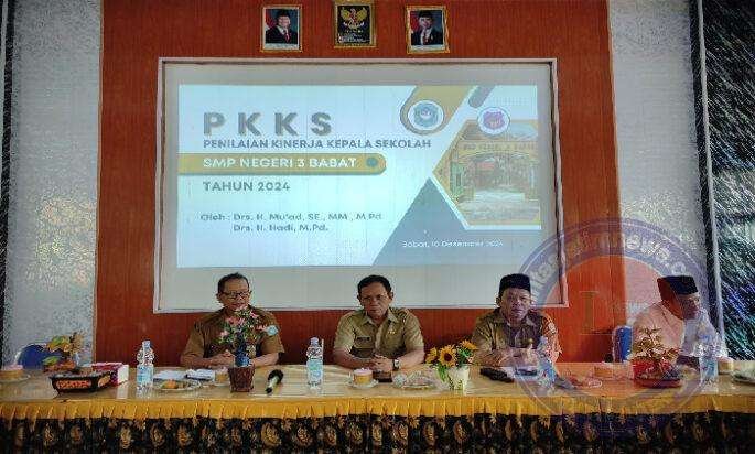 Penilaian Kenirja Kepala Sekolah (PKKS) merupakan kegiatan rutin tahunan yang dilaksanakan untuk memotret kinerja Kepala sekolah baik, SMP, SD, maupun SMA atau SMK sekaligus memotret perkembangan satuan pendidikan dalam satu tahun terakhir. Kegiatan PKKS di SMP Negeri 3 Babat dimulai dengan seremonial pembukaan dan paparan profil sekolah oleh kepala sekolah, dipandu oleh Qoirun Naim, S,Pd., Wakil Kepala SMP Negeri 3 Babat. Kedua Pengawas memberikan sambutan pengarahan.