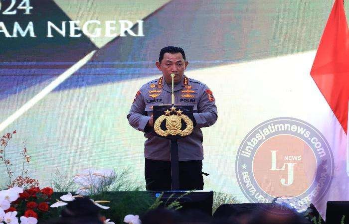 “Yang sama-sama kita muliakan dan kita banggakan panglima tertinggi sekaligus pemimpin tertinggi, Presiden Republik Indonesia Bapak Prabowo Subianto. Pertama-tama kita panjatkan puji syukur ke hadirat Tuhan Yang Maha Kuasa karena atas limpahan rahmat dan karunianya pada hari ini kita masih diberikan kekuatan dan Kesehatan untuk hadir dalam Apel Kasatwil Tahun 2024,” ujar Kapolri saat memberikan sambutan saat pembukaan Apel Kasatwil 2024, Rabu (11/12/24).