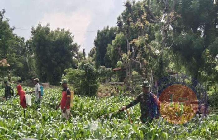 Dalam rangka membantu petani dalam pengendalian hama pada tanaman jagung. Babinsa Koramil 0812/17 Paciran bersama PPL Kecamatan Paciran melakukan penyuluhan dan penyemprot dalam pengendali hama tanaman jagung.