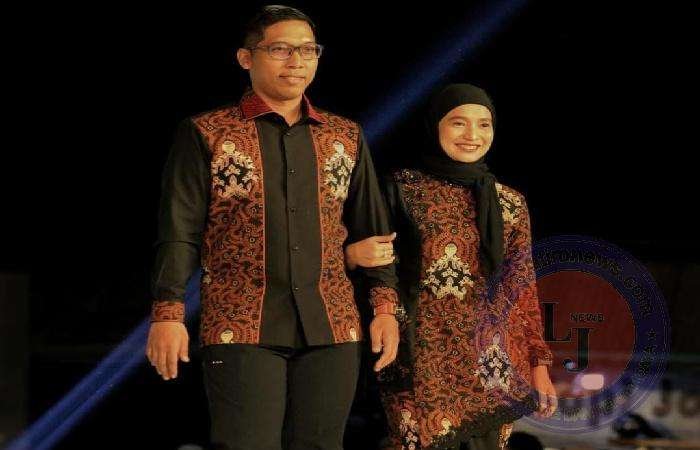 Kapolres Ngawi bersama istrinya, Ny.Indah Dwi tampil berbusana batik sarimbit diatas catwalk Tugu Kartonyono Kabupaten Ngawi.
