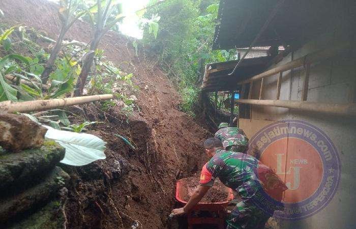 “ Dinding rumah dapur jebol hingga material longsoran masuk ke dalam rumah, jadi hari ini kami bersama warga sekitar kerja bakti fokus mengangkat longsoran tanah yang masuk ke dapur yang jumlahnya lumayan banyak, “ ujar Peltu Jariyanto yang mengatakan bahwa kerja bakti akan berlanjut besok dengan mengerahkan anggota Koramil semaksimal mungkin.