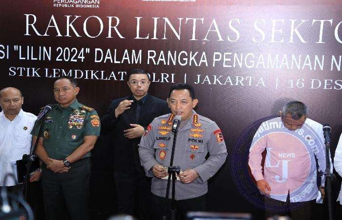 JAKARTA lintasjatimnews – Kapolri Jenderal Polisi Drs. Listyo Sigit Prabowo memimpin rapat lintas sektoral persiapan pengamanan libur Natal dan tahun baru (Nataru). Dalam rapat tersebut hadir Menteri Perhubungan Dudy Purwagandhi, Panglima TNI Agus Subiyanto, Menteri Agama Nasaruddin Umar, Kakorlantas Polri Irjen Pol Aan Suhanan dan instansi terkait lainnya.