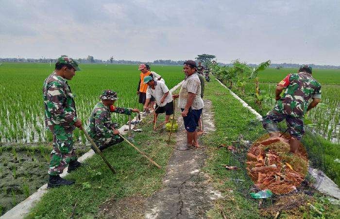 SRAGEN lintasjatimnews – Petani padi dibantu oleh Serda Gatot Kusworo Babinsa Desa Suwatu Koramil 19/Tanon Kodim 0725/Sragen melakukan operasi “gropyokan” hama tikus di area persawahan Desa Suwatu Kec. Tanon. Aksi dimulai pukul 08.30 WIB itu berhasil menangkap puluhan ekor tikus yang bersembunyi di liang-liang dalam tanah di sekitar saluran irigasi sawah setempat, Selasa ( 17/12/2024 ).