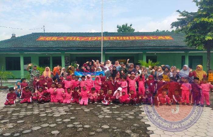 Peltu Mujiyar selaku Batuud Koramil 13/Kedunggalar bersama anggota menyambut kedatangan anak didik TK Perwanida dengan memberi sambutan yang baik dan ramah.