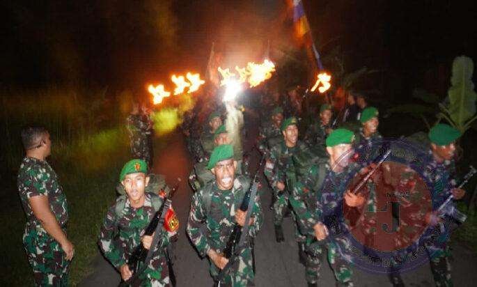 BOYOLALI lintasjatimnews – Dandim 0724/Boyolali Letkol Inf Wiweko Wulang Widodo, S.Pd.M.Han menghadiri upacara serah terima acara simbol Gerak Jalan Peleton Beranting YWPJ di titik ganti Yonif 405/ SK kepada Yonif 403/ Wirasada Pratista dalam rangka peringatan hari Juang ke – 76 Infanteri Tahun 2024 yang bertempat di Dukuh Nglampok Desa Guwo Kecamatan Wonosegoro Kabupaten Boyolali. Selasa malam ( 18/12/24)