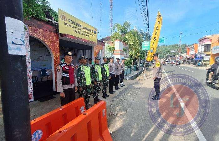 PACITAN lintasjatimnews – Anggota Kodim 0801/Pacitan melaksanakan pengamanan di pos pengamanan Natal dan Tahun Baru di Jalur Lintas Provinsi Pacitan-Ponorogo tepatnya di Kecamatan Arjosari, Kabupaten Pacitan.Sabtu (21/12/2024).