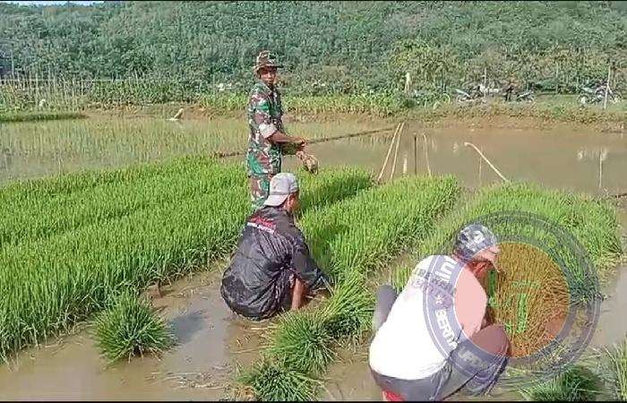 Dalam upaya mempercepat proses masa tanam padi serentak di wilayah, Babinsa melakukan pendampingan secara langsung kepada para petani, guna mencapai target swasembada pangan Nasional.