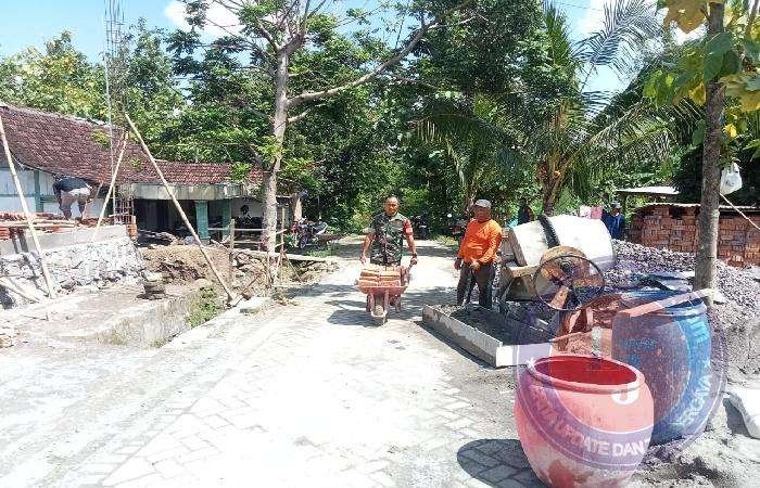 NGAWI lintasjatimnews – Anggota Koramil 01/Ngawi Kodim 0805/Ngawi Serma Dadang bersama warga melaksanakan kegiatan gotong royong dalam pembangunan Masjid di Desa Banyuurip Kecamatan Ngawi, Senin (23/12/2024).
