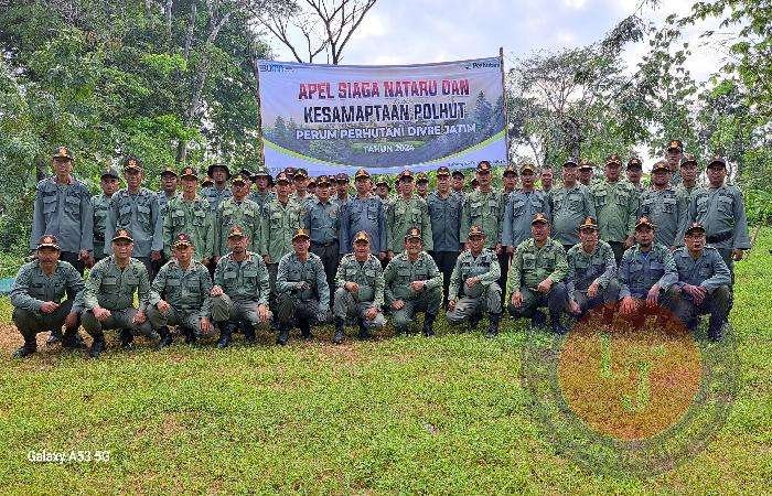 Bayu Nugroho S.Hut. Administatur (ADM) Perhutani Tuban gelar giat apel siaga dan Kesamaptaan bersama Aiptu Nono Puji K, Kanit Bimas Polres Tuban.