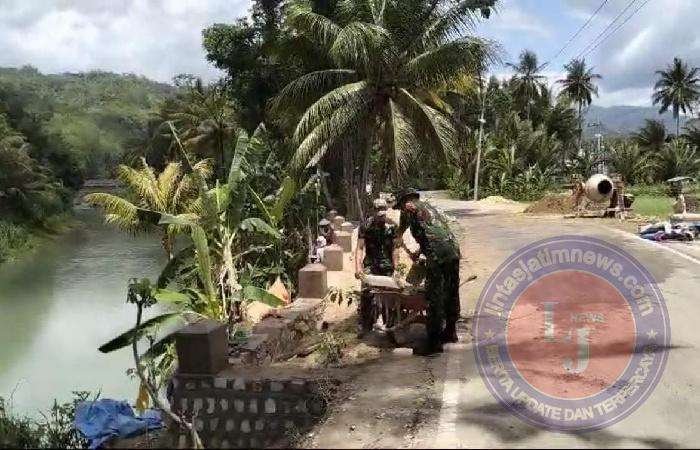 PACITAN lintasjatimnews – Wujud Nyata Kemanunggalan TNI dengan Rakyat bergotong royong melaksanakan kerja bakti dalam pembuatan talud jalan guna mencegah tarjadinya longsor.