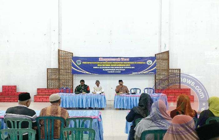 PACITAN lintasjatimnews – Dalam upaya mendukung pembangunan di Desa Babinsa Koramil 0801/03 Arjosari Koptu Tri H menghadiri Rapat Musyawarah Desa (Musdes) yang di laksanakan pada Selasa malam pukul 20.00 Wib Rapat ini bertujuan untuk menetapkan Anggaran Pendapatan dan Belanja Desa (APBDes) Tahun Anggaran 2025 bertempat di gedung pertemuan desa Gayuhan, Kecamatan Arjosari, Kabupaten Pacitan.