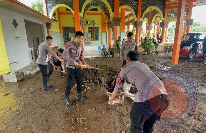 Kapolres Situbondo AKBP Rezi Dharmawan, S.I.K., M.I.K. mengungkapkan pasca terjadi banjir di wilayah Kecamatan Kendit, Polres Situbondo menerjunkan puluhan personel termasuk Sat Brimob Polda Jatim untuk membantu masyarakat membersihkan material lumpur sisa banjir di pemukiman warga yang terdampak banjir.