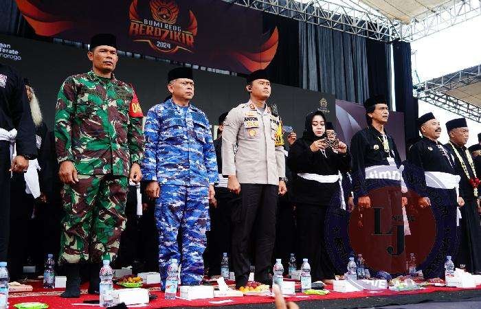 Suasana penuh khidmat terasa ketika ribuan peserta melantunkan dzikir bersama.
