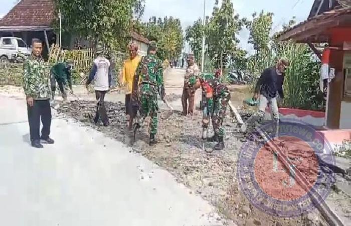 SRAGEN lintasjatimnews – Serda Ali Sumanto Babinsa Desa Srawung beserta Anggota Koramil 12/Gesi Kodim 0725/Sragen, kembali menunjukkan kepeduliannya terhadap kemajuan desanya dengan aktif berpartisipasi dalam pengerukan tanah untuk persiapan pengecoran jalan Dk. Srawung Ds. Srawung Kec. Gesi, Jum’at ( 03/01/2025 ).